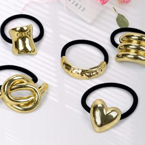 Gold Hair Cuffs: These gold hair cuffs hair ties are a classic combination of metal and black, simple yet very versatile. The diverse design of the metal part, can be easily matched with different clothes, showing a multi-level fashion charm.