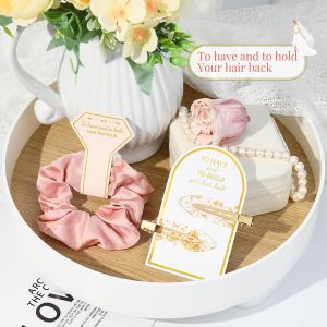 💖Attractive Designs: these bridesmaid hair ties and hair clips are printed with words “To have and to hold your hair back”, rose gold color makes them look more elegant and attractive, can leave a deeper impression on others