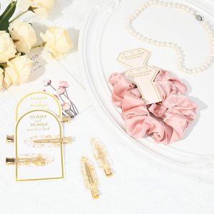Looking for cute stuff for your bridesmaids’ proposal boxes? Here you go! These silk satin scrunchies and hair clips are perfect wedding gifts!