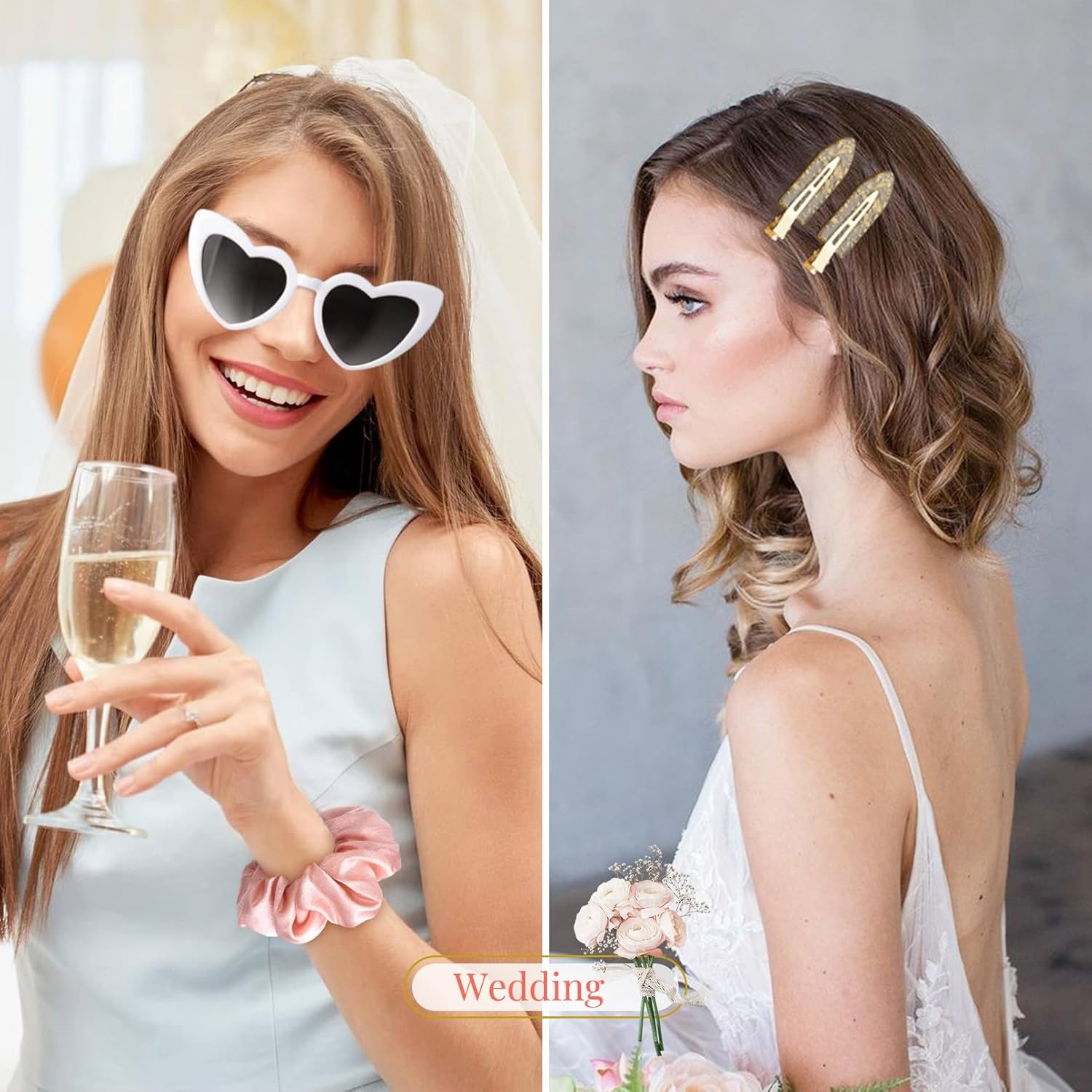 💖Stylish and Elegant: These bridesmaid hair clips and hair scrunchies are specifically crafted for brides who desire a touch of elegance on their special day. The sleek and refined design of the clips effortlessly complements any bridal hairstyle, enhancing your overall appearance with a subtle yet glamorous charm.