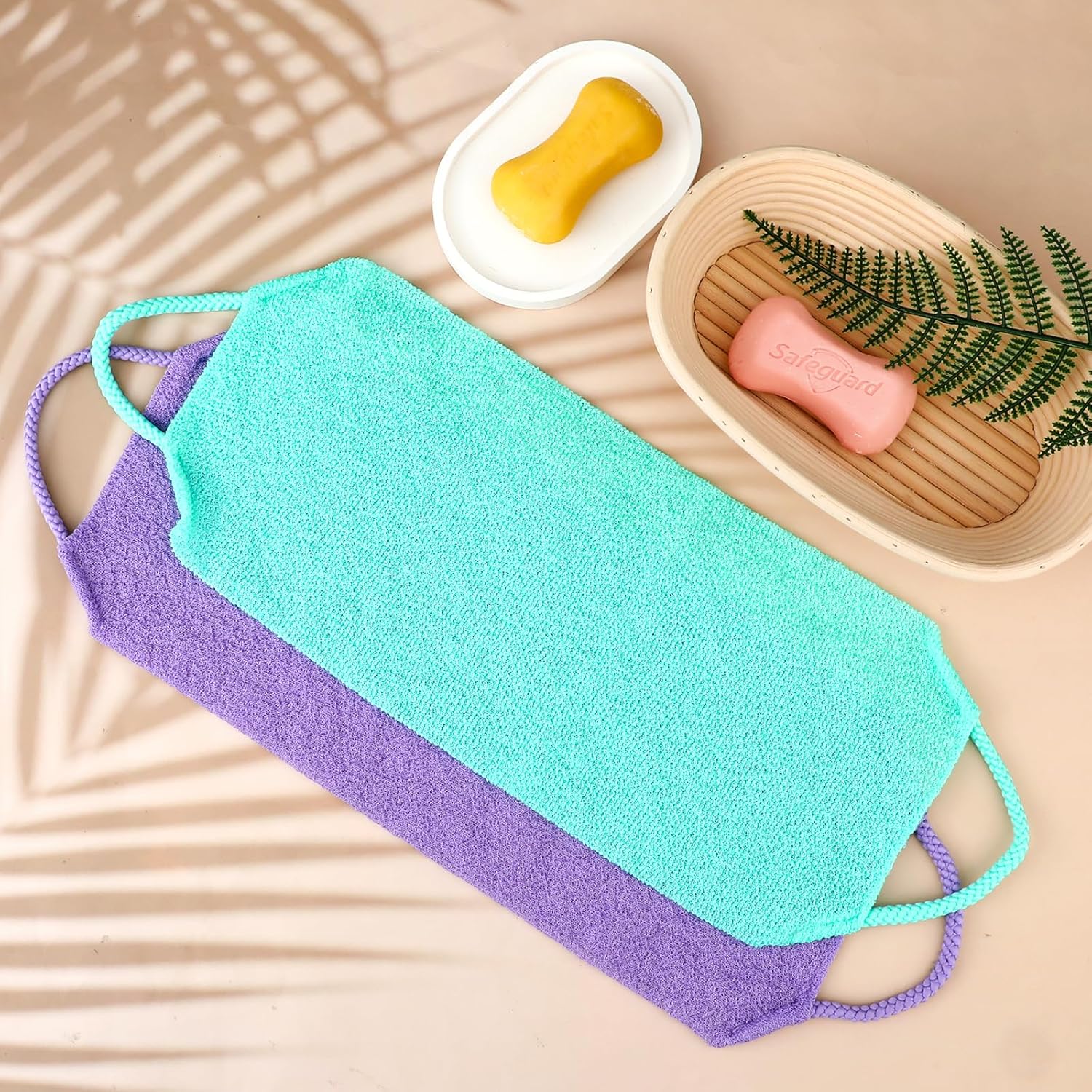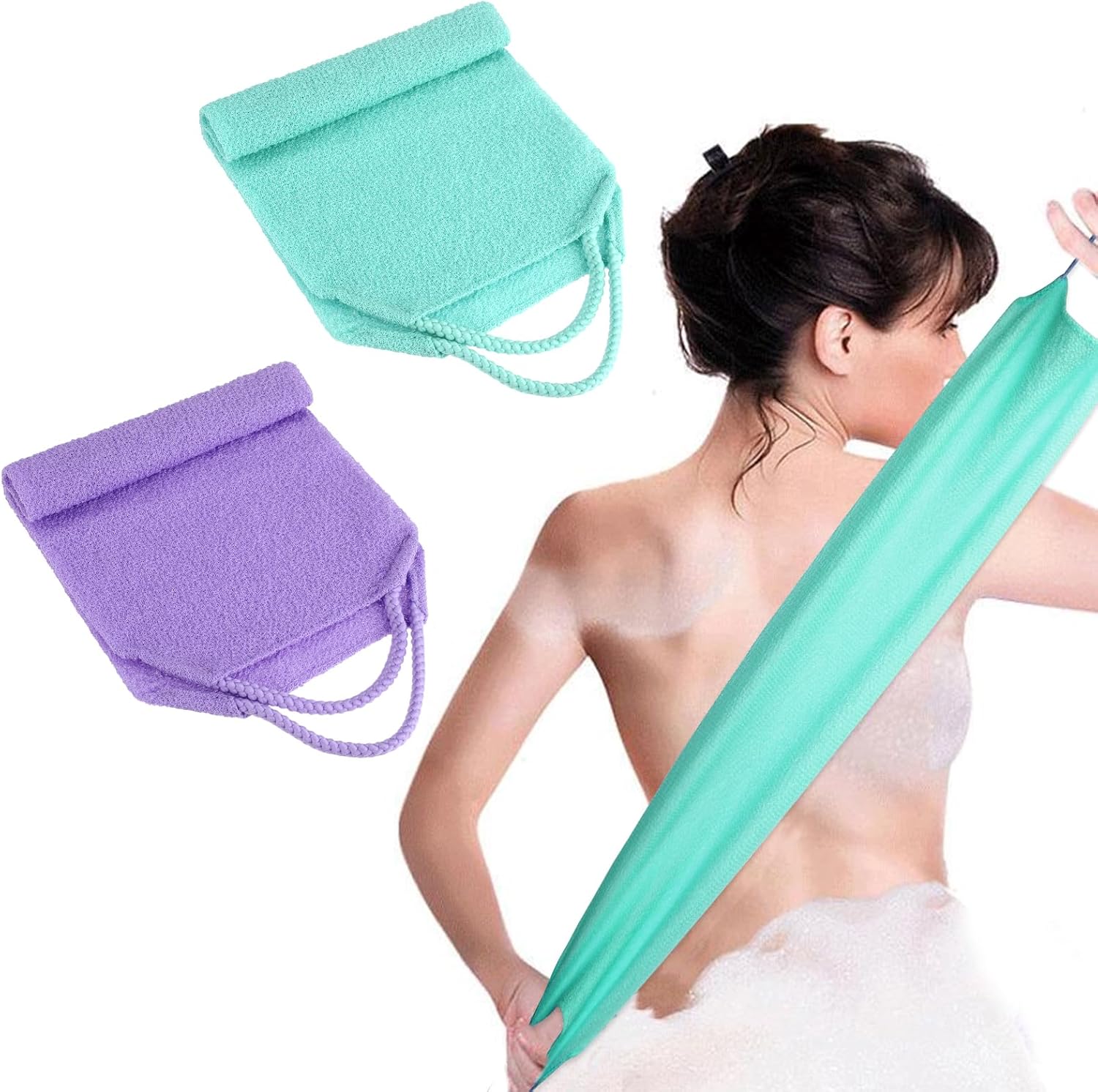 2Pcs Back Scrubber Nylon Exfoliating Washcloth Body Bath Pull Strap Scrubber with Handles Extended Length Washers Stretchable Shower Scrubber for Face Back Cleans Skin Massages Women Men