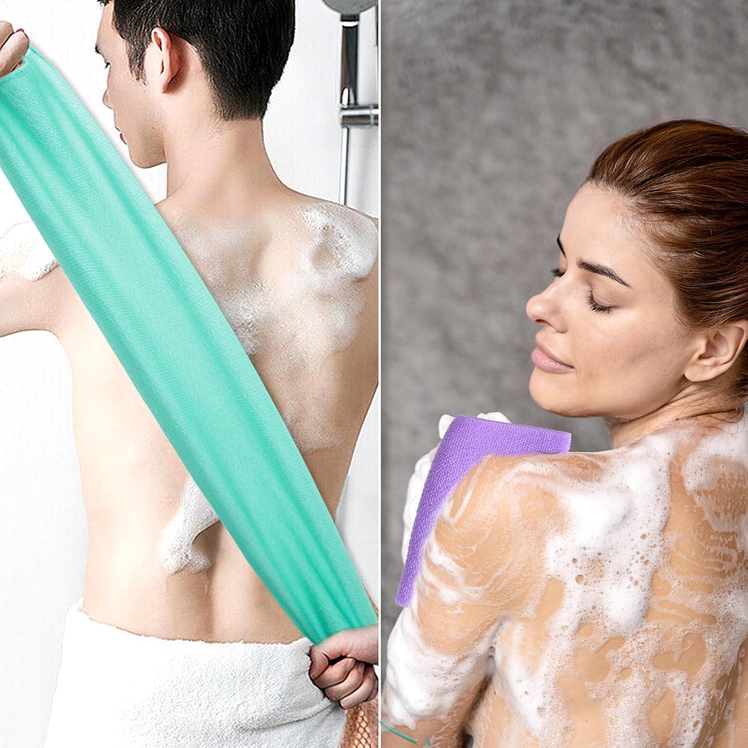 【High-Quality Material】The shower scrubber is made of high-quality nylon material, body scrubber is soft to the touch and will not hurt your skin. You can confidently use this exfoliating washcloth, and the back scrubber will bring you a great experience.