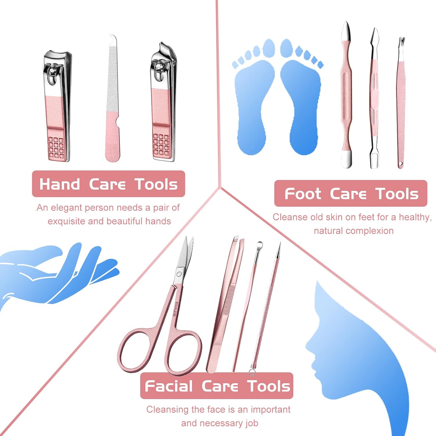 ❤️Upgraded design👍Ladies manicure set is designed according to various aspects of the human body, suitable for all ages/all genders/all purposes, solving manicure/pedicure/eyebrow trimming/acne removal/exfoliating/any needs, powerful functions