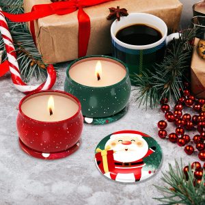 High-Quality Container – The natural soy wax santa claus candles have beautiful metal containers, which enhance the warm glow of the candle light as it burns.