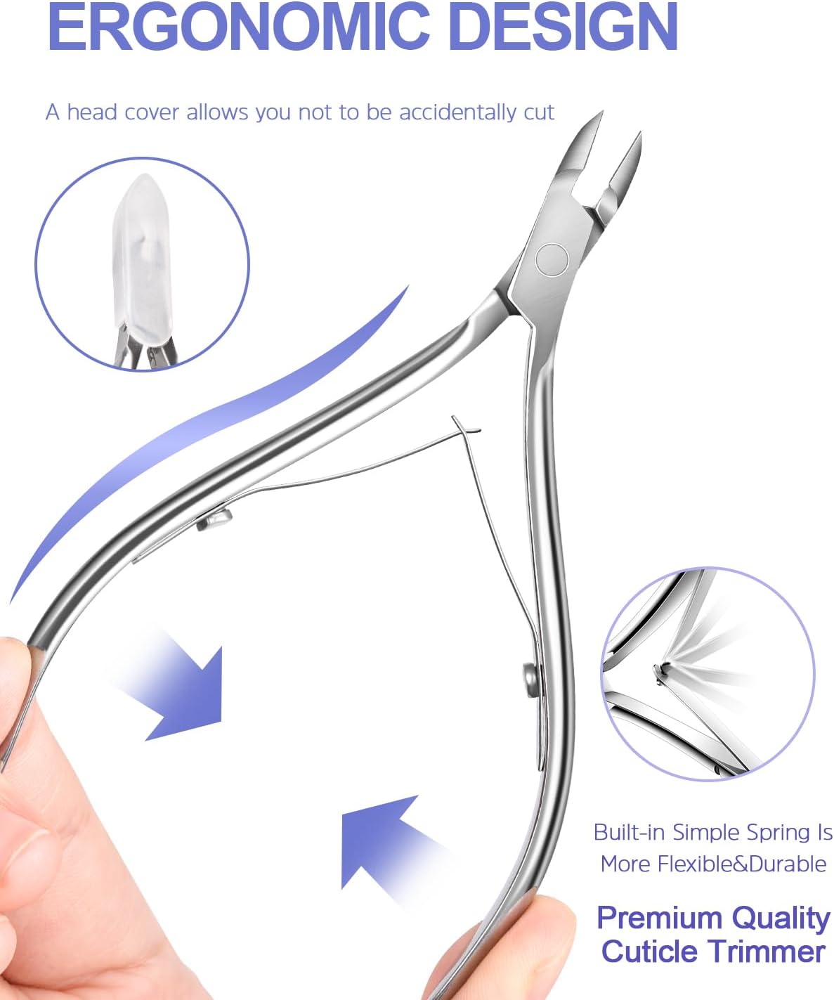 Cuticle Trimmer Set: the stainless steel cuticle clippers for nails are sharper and more efficient for a long time, making sure that the dead skin and cuticle easily removed. Other 4pcs manicure tools help you reach nail edge more easily to remove the stubborn debris effortlessly.