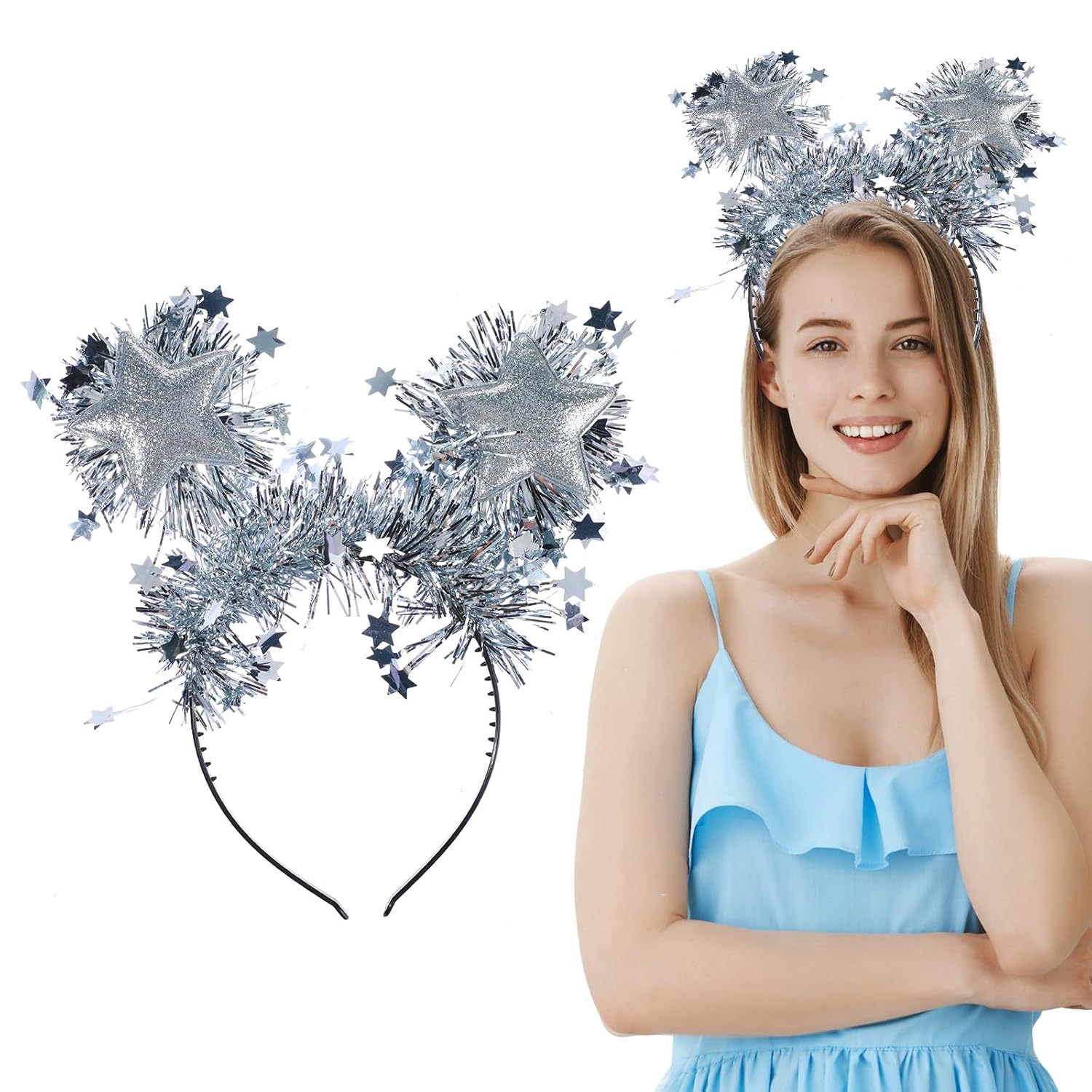 Foil Strips Pom Pom Headband Tinsel Fashion Headband Fluffy Ball Hair Loop Cosplay Hair Accessories for Women Girls Christmas Party Birthday